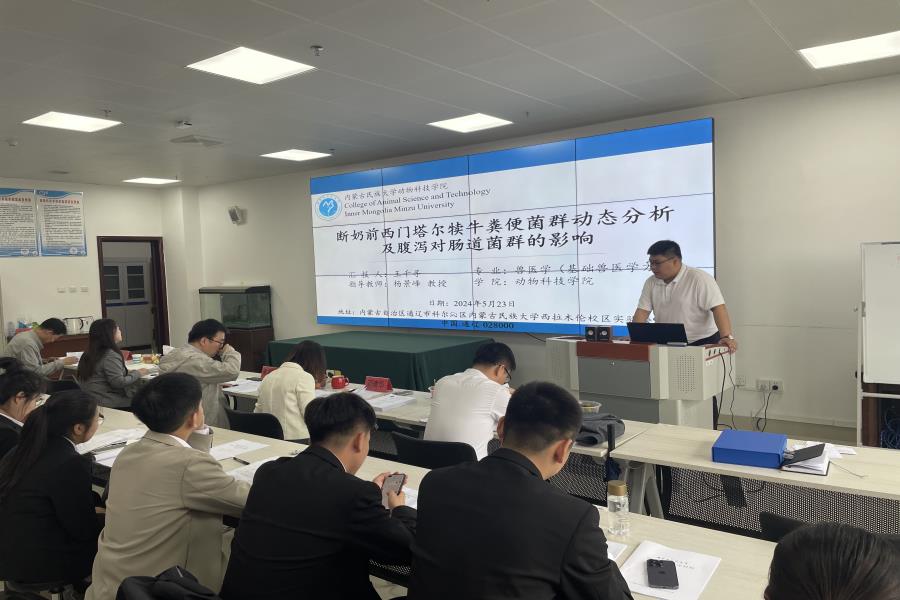 本次答辩会,兽医学专业毕业生答辩邀请了华中农业大学谢书宇教授作为答辩委员会主席,邀请沈阳农业大学尹荣焕教授作为答辩委员会委员;畜牧和动物营养与饲料科学专业毕业生答辩邀请了内蒙古农业大学闫素梅教授作为答辩委员会主席,邀请内蒙古农业大学张文广教授作为答辩委员会委员。专家们从文献综述到格式规范,从思路框架到数据收集,从行文逻辑到论证效果,逐一进行了点评,并给出了宝贵的修改建议。这种严谨的学术态度和精神,无疑为在场的每一位参与答辩的同学树立了榜样。整个答辩过程程序规范,秩序井然,公正透明,充分展示了答辩委员会严谨的治学态度和内蒙古民族大学动物科技学院研究生良好的学术素养。