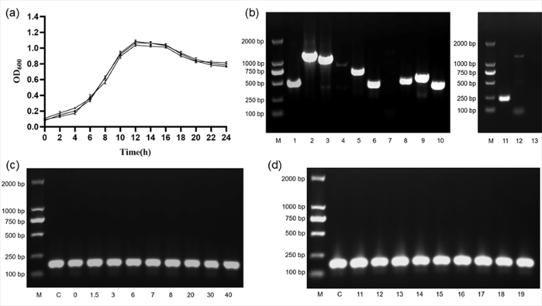 C、D,单因素胁迫因子的RNA验证。注:M, DL2000 DNAMarker; 0, 0组; 1.5, 1.5组; 3, 3组; 6, 6组; 8, 8组; 20, 20组; 30, 30组; 40, 40组; C: control组。