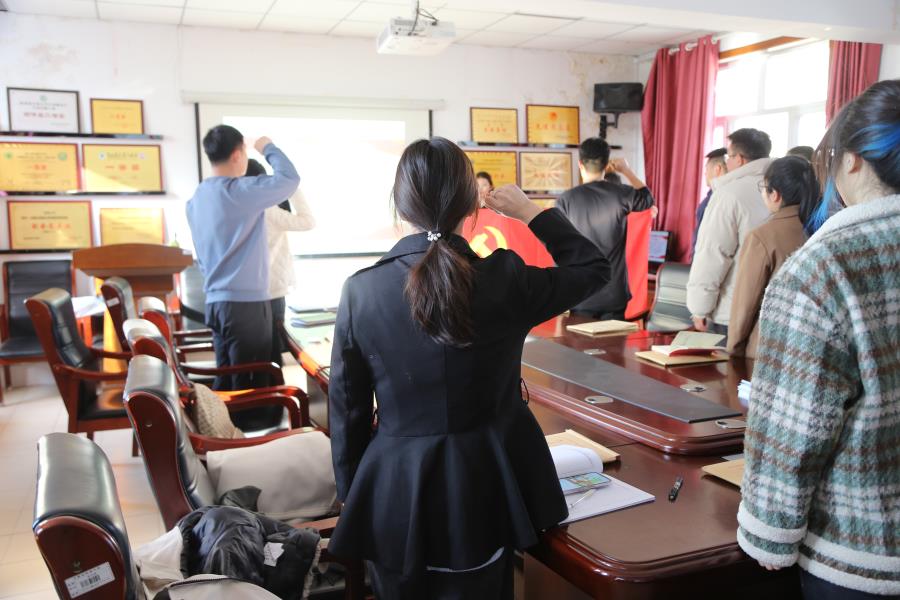 宣誓仪式上,党员们面向党旗,在领誓人的带领下满怀热情而又庄重地心情,高举右拳、庄严宣誓。在激昂的宣誓声中,每一位党员都接受了一次深刻的思想洗礼。