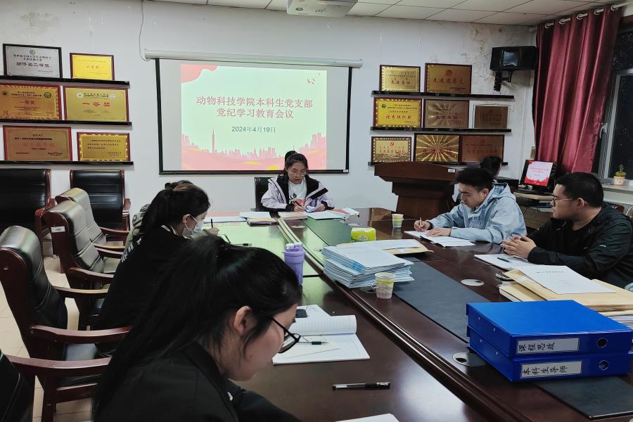为扎实开展党纪学习教育,加强党的纪律建设,增强党员学纪、知纪、明纪、守纪,4月19日,动物科技学院本科生党支部在西拉木伦校区树人楼314会议室召开党纪学习教育动员部署会。会议由本科生第二党支部书记董文净主持,本科生第一党支部、本科生第二党支部学生党员参加。