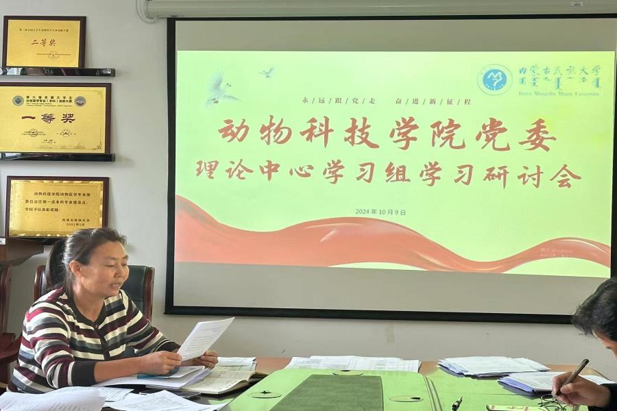 10月9日,动物科技学院于西拉木伦校区树人楼314会议室召开党委理论学习中心组集中学习研讨会。会议由学院党委书记包兰英主持,学院院长杜立银、党委副书记昭日格图、副院长宋扬、党委委员高树新、祁保霞、鲍海英参加会议,领导班子成员围绕学习贯彻全国教育大会精神进行了交流发言。