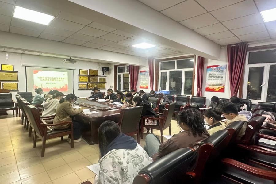 为深入学习贯彻习近平总书记关于民族团结进步的重要指示精神,10月9日动物科技学院在树人楼314组织本科生党支部开展民族团结专题学习会。本次活动由学工办主任鲍海英主持,辅导员邢家辉、藏小文和全体本科生党支部党员参加。