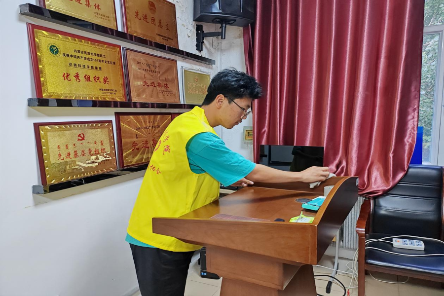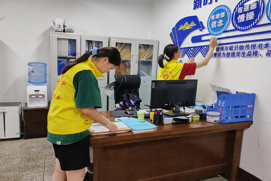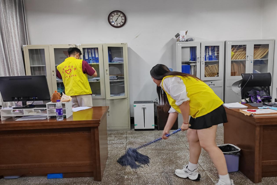 本次活动,志愿者们首先针对室内办公环境卫生进行了全面清扫。将树人楼三楼办公室、会议室及各房间内的暂存品彻底清理,办公室内整洁有序,物品摆放整齐规范。实验室也按照相关要求,对物品进行了规范摆放和保存,确保实验室环境的安全与整洁。通过落实卫生片区责任制,依照标准定时定点进行常规保洁和垃圾清理,确保楼内公共区域和教室卫生干净整洁,物品规整。