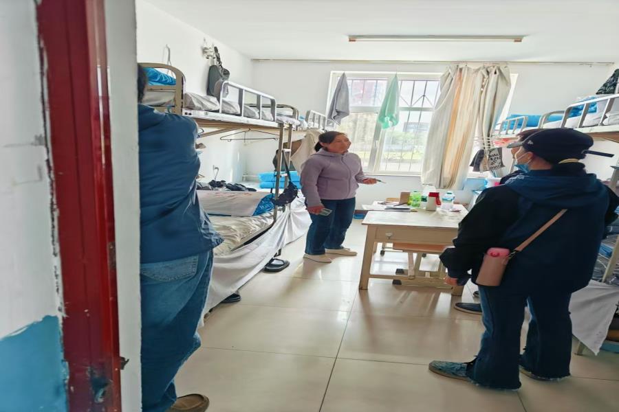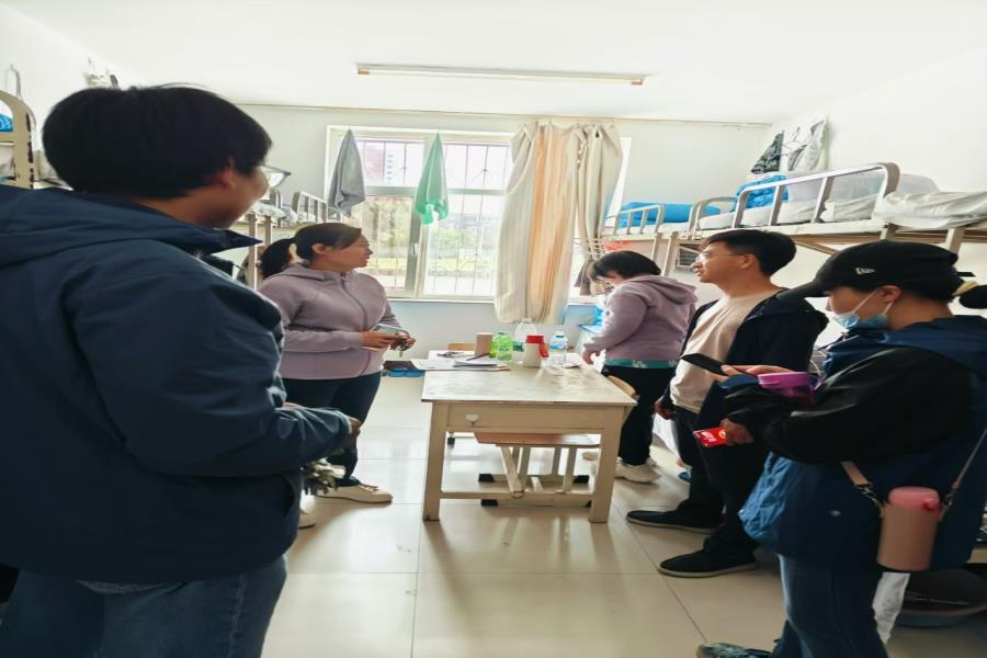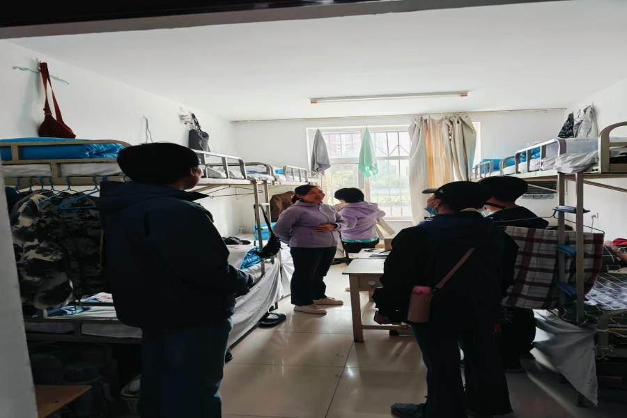 为了进一步加强学生宿舍安全管理,9月14日下午,学院党委书记包兰英、学工办主任鲍海英和班主任深入东区7号楼学生宿舍进行安全隐患排查,了解学生学习生活特别是人际交往中出现的矛盾等。旨在检查学生公寓区域内是否存在管制刀具等危险品及日常卫生状况,进一步加强学生宿舍安全教育和管理,消除安全隐患,提高学生安全意识。