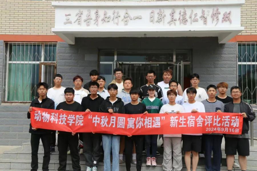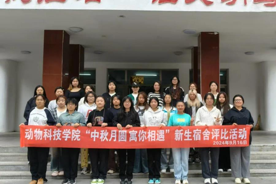 为引导2024级新生共同创建干净整洁的宿舍卫生环境,构建和谐文明校园,营造清新干净的寝室氛围,动物科技学院于2024年9月16日上午在滨河校区四号楼和霍林河校区七号楼开展以“中秋月圆,寓你相遇”为主题的新生宿舍评比活动。由学工办主任鲍海英、团总支书记董文净参与评定,参加评比的宿舍为2024级全体宿舍。