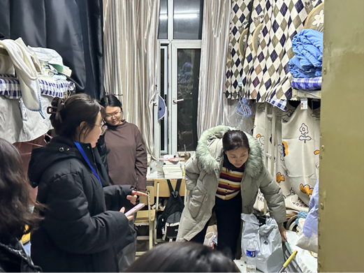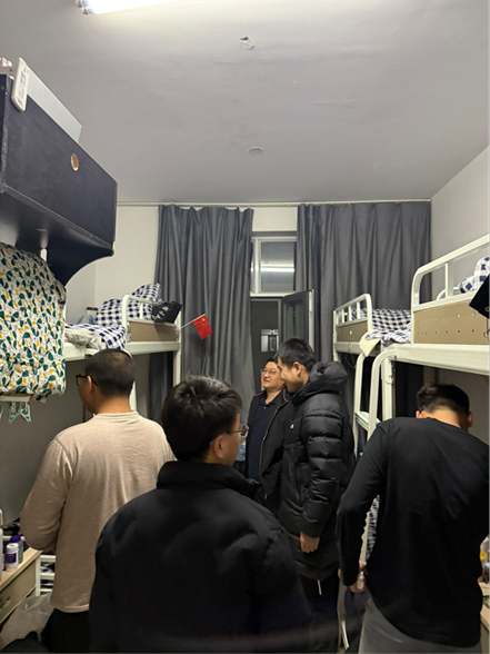 走访过程中,重点检查了宿舍卫生、用电安全以及消防安全等情况。老师们耐心细致地排查安全隐患,叮嘱同学们注意安全用电,保持宿舍卫生整洁,共同营造安全舒适的生活环境。同时,与同学们亲切交谈,详细了解同学们的寒假生活、返校情况和新学期计划,并耐心解答同学们提出的问题。老师们鼓励同学们尽快调整状态,抖擞精神,以饱满的热情与昂扬的斗志投入到新学期的学习生活中,衷心祝愿同学们在新学期能够学业有成,收获优异成绩。
