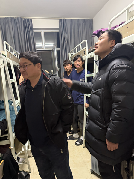 寒假的余韵尚未散尽,新学期的钟声已然敲响。在这新旧交替之际,为确保莘莘学子安全返校,倾力营造温馨和谐的校园环境,2月16日晚,学院党委书记包兰英、党委副书记昭日格图带领辅导员和班主任分组走访了各年级学生宿舍,开展了一场兼具关怀与责任的安全检查及慰问活动,为同学们送去新学期的诚挚关怀与融融暖意。