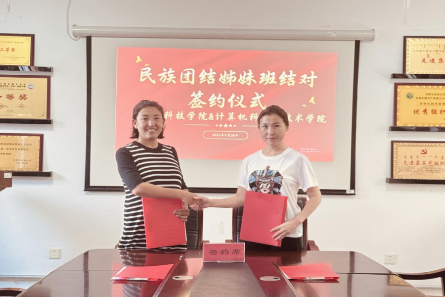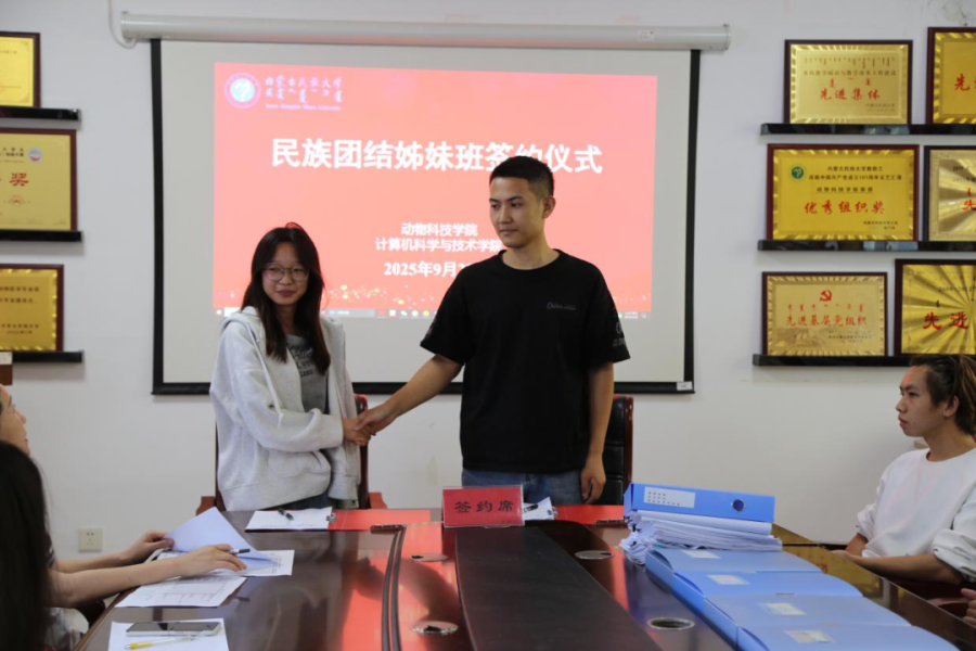 为深化“民族团结姊妹班”共建成果,将民族团结教育融入实践育人全过程,9月28日,动物科技学院与计算机科学与技术学院在树人楼314举行结对共建签约仪式,并以“劳动促团结、实践共奋进”为主题,组织“民族团结姊妹班”师生开展联合劳动实践活动。动物科技学院学工办主任鲍海英、计算机科学与技术学院学工办主任其乐格尔及辅导员邢家辉共同带队,两院各民族学生代表携手参与,在汗水与协作中厚植民族团结情谊,谱写共同成长新篇章。