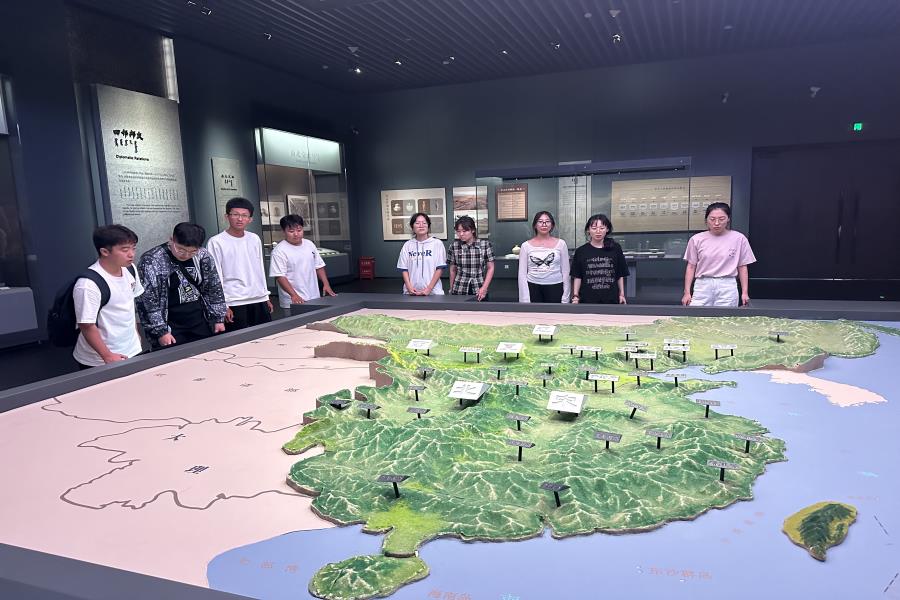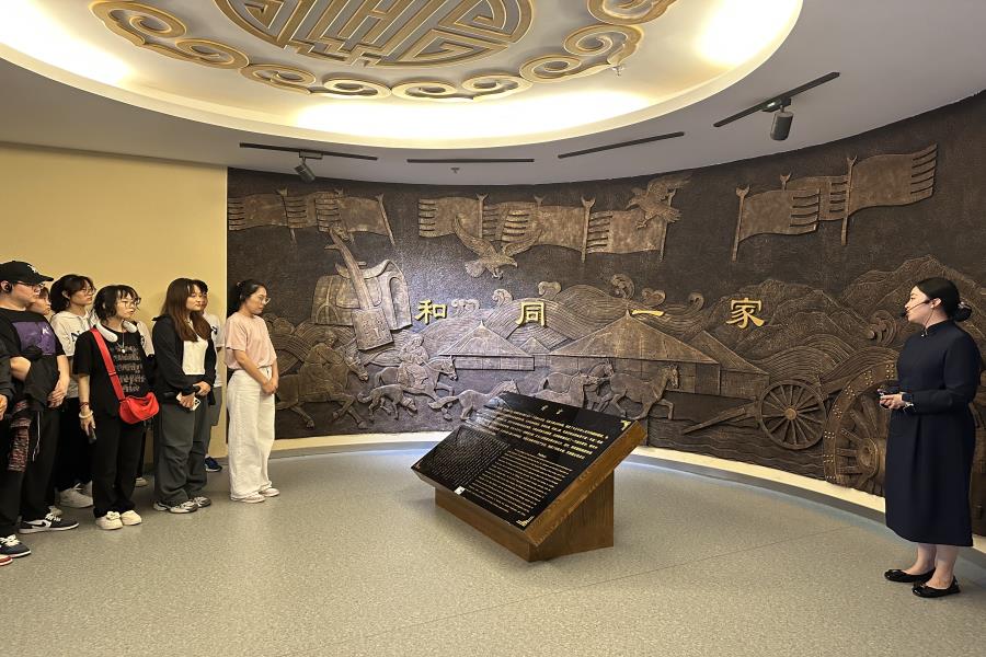 8月12日上午,实践团来到赤峰市博物馆。走进馆里,实践团成员首先被庄重的序厅所吸引,它仿佛是一扇穿越时空的大门,引领大家踏入历史的长廊。跟随讲解员的脚步,实践团成员依次参观“日出红山”、“古韵青铜”、“契丹华韵”和“和同一家”四个展厅,欣赏了新石器时代红山文化的精美玉器、陶器,领略北方草原青铜文化的独特韵味,深刻感受赤峰地区丰富的史前文化、草原青铜文化、辽文化以及元明清时期各民族共同创造的物质和精神文化遗产。通过参观赤峰市博物馆,实践团成员深入了解赤峰地区丰富的历史文化,进一步增强了文化自信和民族自豪感,激发了他们对中华优秀传统文化的热爱和传承意识。