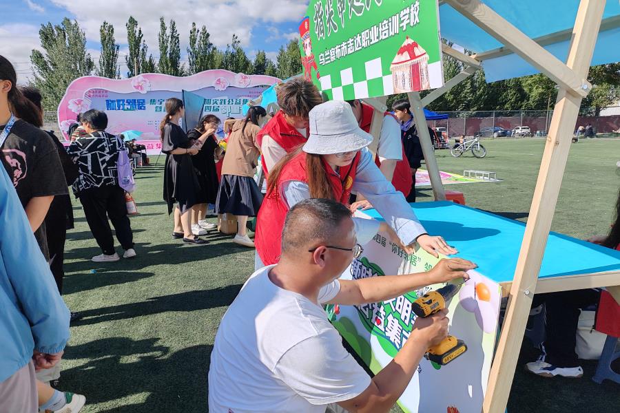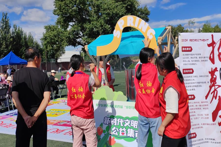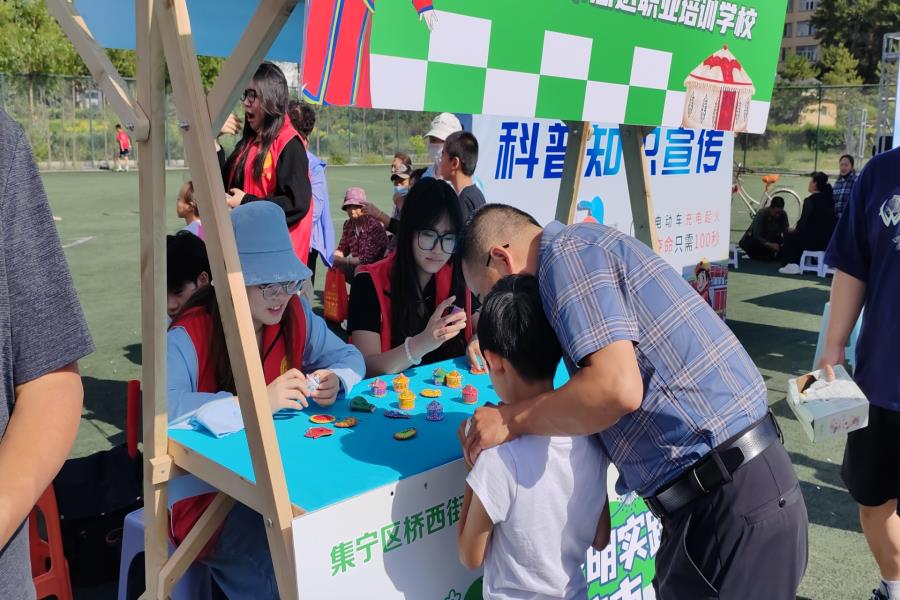 16日下午,实践团成员赴乌兰察布市集宁区马桥街社区体育场参与由中共集宁区委宣传部主办,集宁区精神文明建设办公室、集宁区新时代文明实践服务中心、集宁区文化旅游体育局、桥西街道党工委、桥西街道办事处、集宁区乌兰牧骑、桥西街道党群服务中心、桥西街道新时代文明实践所共同承办的“集宁区新时代文明实践公益集市暨桥西街道第四届邻里节”活动。活动中,团队成员同红袖公益协会为本次活动的志愿者,引导社区居民参加活动,协助各个展位人员讲解相关知识、开展相关活动并协助维持现场秩序等。例如在“指尖串起民族情”展位,团队成员拿出“蒙古包”“蒙靴”“温都鲁”“皮囊酒壶”等形状的特色缝制挂饰,吸引社区里的小朋友前往认识和了解蒙古族文化;在“消防安全‘回民社区’”展位,团队成员穿上事先准备好的消防员玩偶服吸引社区居民前往学习灭火器的使用方法、应急逃生相关注意事项等;在“法律知识盲盒”展位,我们协助开展活动现场秩序维持、盲盒答题判定、礼品发放以及活动物品的管理等。大家也纷纷表示在这次与社区居民一同领略少数民族传统文化的“大思政课”中,理解了民族团结是一种精神、一种思想整合力量、一种追求,它对凝聚人心、整合社会起着重要作用,能够进一步促进各民族之间的文化交流,加强民族团结。