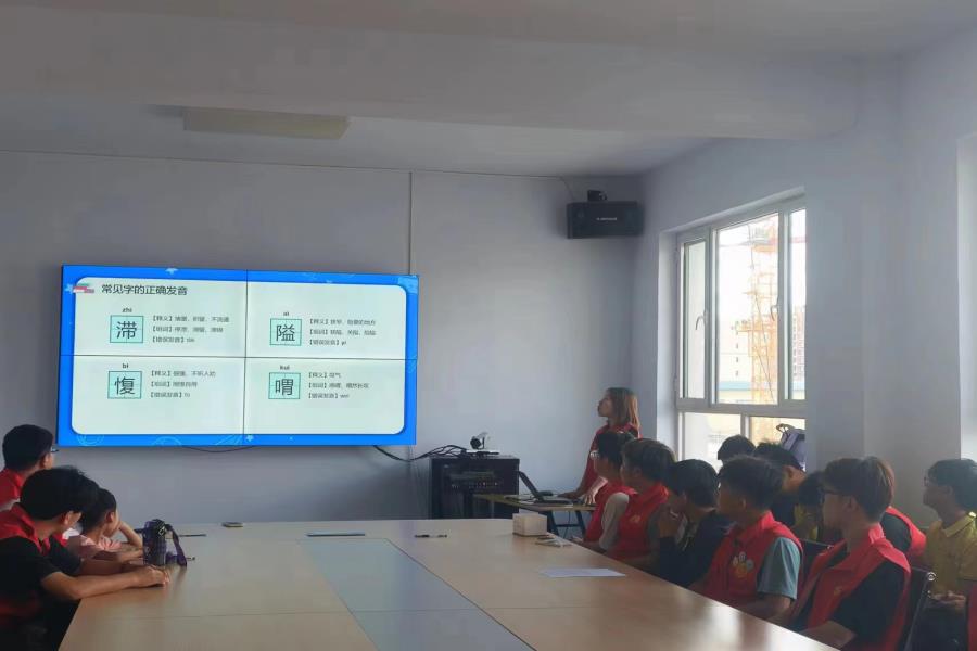 我国是多民族、多语言、多方言的人口大国,推广普及普通话有利于增进各民族各地区的交流,有利于维护国家统一和增强中华民族凝聚力。7月18日下午,实践团成员在乌兰察布市集宁区马桥街社区党群服务中心开展以“民族团结一家亲”为主题的普通话推广宣讲活动。宣讲活动中,团队成员与红袖协会负责人从什么是普通话、常见字的正确发音、为何要推广普通话、如何讲好普通话以及游戏环节“普通话大闯关”五个板块一同为现场小朋友讲解学习普通话的重要性以及必要性。通过此次宣讲,团队成员以切实行动讲述民族团结进步的故事,有力增强自身沟通协调能力及民族认同感和归属感,也让大家深切领悟铸牢中华民族共同体意识的内涵与重要意义。