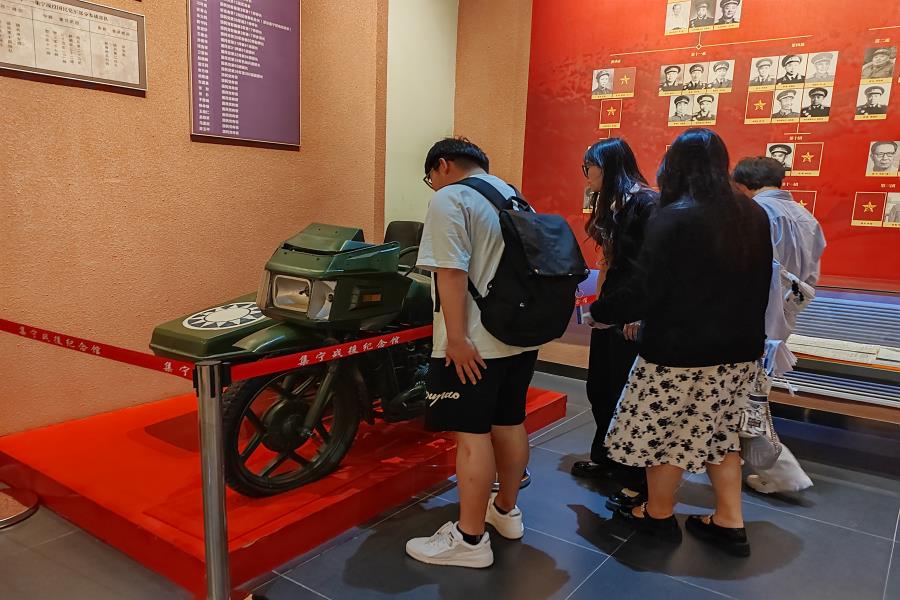 7月16日,动物科技学院“和合共生”民族团结实践团首先前往乌兰察布市集宁战役纪念馆和乌兰察布党史馆进行参观。馆内,成员们跟随特定路线见到了战役各个阶段的珍贵影像、书籍、刊物、宣传画、电报机、手榴弹、迫击炮、烈士遗物、战士们英勇表现的雕塑等。一幅幅图片、一段段文字、一件件战时用具让我们深刻地体会到那段历史留给我们的不仅是悲痛欲绝的哀伤、永志追思的英烈和伟岸壮阔的史诗,更是追求和平的渴望与强国富民的决心。而陈列于纪念馆旁的诸多目前所能看到的先进民用飞机、战斗机、坦克、东风导弹等模型也形象的展示当前祖国军事力量的强盛。