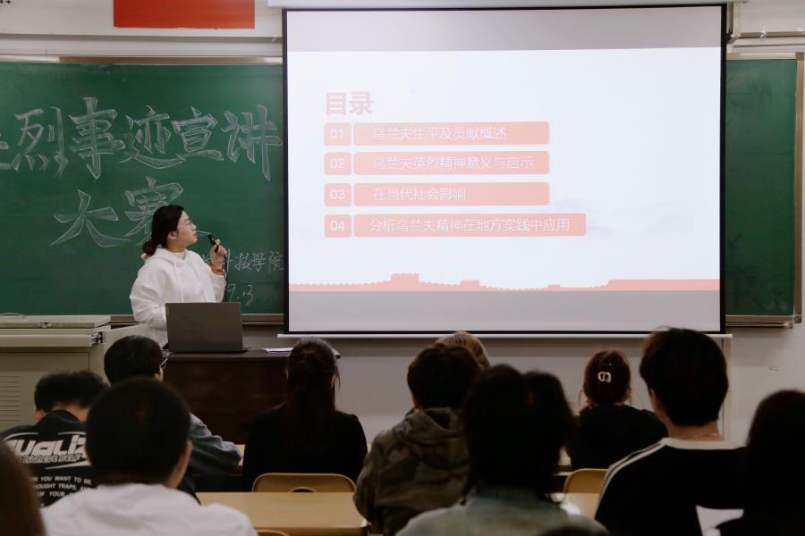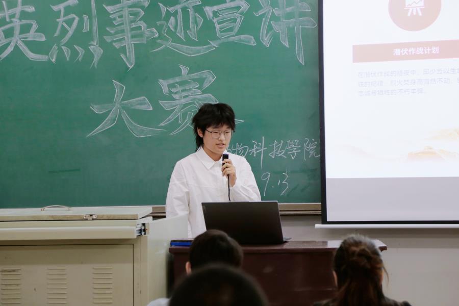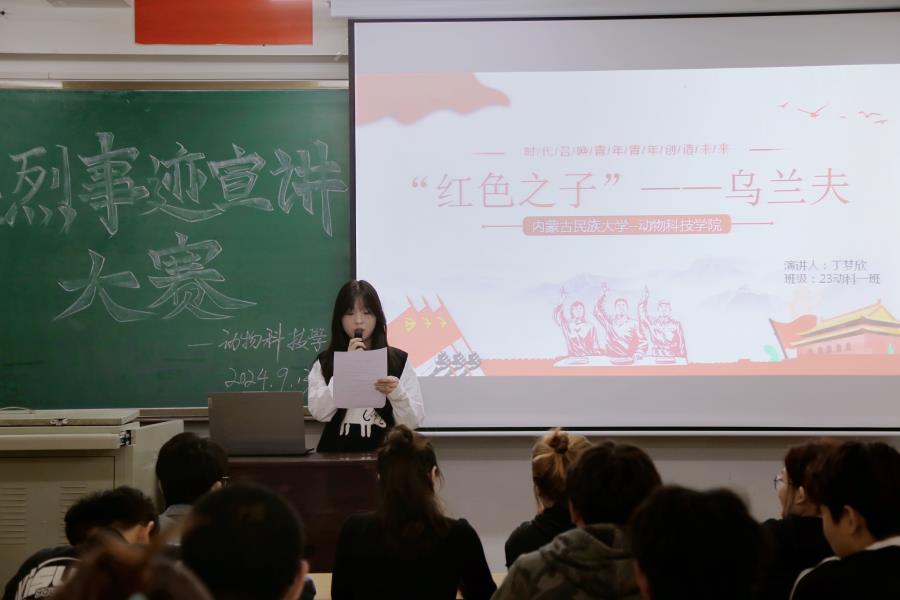 为深入学习贯彻习近平新时代中国特色社会主义思想和党的二十大精神,落实习近平总书记关于烈士褒扬工作重要指示批示精神,营造崇尚英烈、缅怀英烈、学习英烈、捍卫英烈的浓厚校园氛围,9月13日,动物科技学院在西拉木伦校区理工楼503教室举办“弘扬英烈精神 凝聚奋进力量”英烈事迹宣讲比赛。