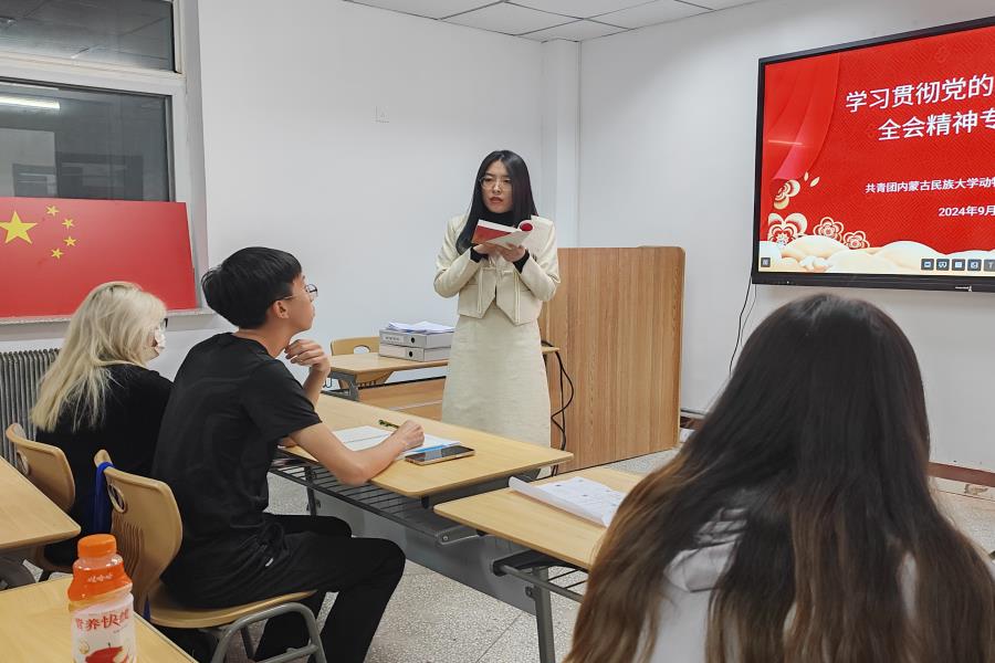 为深入学习贯彻党的二十大及党的二十届三中全会精神,部署新学期共青团工作,更进一步加强团干部队伍建设,9月18日,动物科技学院团总支在西拉木伦校区树人楼316室召开学习贯彻党的二十届三中全会精神专题学习会。会议由团总支书记董文净主持,全体团支部书记参会。