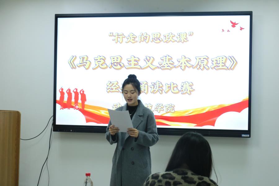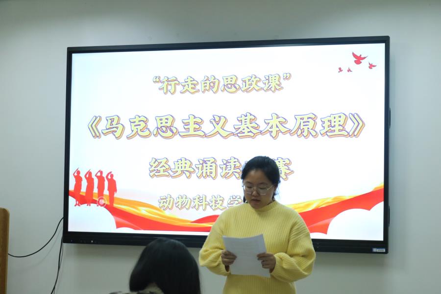为了引导学生在经典诵读中涵养正气、淬炼思想,使全院形成学习马克思主义经典理论和阅读红色理论的进步风气,10月21日,动物科技学院在树人楼316室举办了以“读红色经典,诵时代华章”为主题的《马克思主义基本原理》经典诵读比赛。学院团总支书记董文净,辅导员邢家辉、藏小文出席活动。