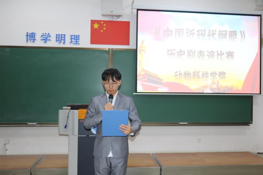 为深入挖掘和传承中国近现代历史中的红色文化与革命精神,增强青年学子的历史代入感、强国责任感和复兴使命感,培养学生爱国主义精神和团结协作能力,10月28日,动物科技学院在实验楼303室举办《中国近现代史纲要》课历史剧表演比赛。