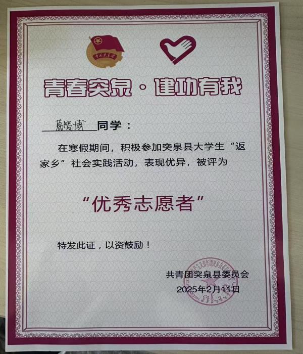 活动期间,我强烈感受到作为青年志愿者的责任,与不同游客之间的交流逐渐锻炼了我的沟通能力和解决问题的能力,为游客服务获得满意笑容与真诚感谢,内心满是温暖感动。近距离接触突泉民俗文化与歌舞艺术,深感传承弘扬地方文化的重要性。此次志愿者经历让我体会奉献的快乐意义,坚定未来继续参与志愿服务的决心,愿传递爱与温暖,让社会更美好。