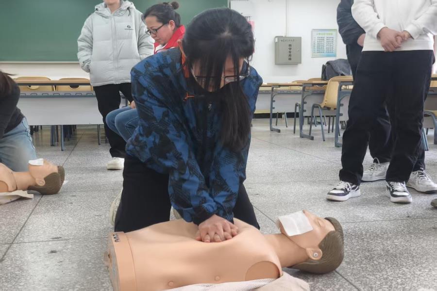 培训现场,老师们凭借丰富的专业知识和实践经验,采用理论讲解与实际操作相结合的方式,详细介绍了心肺复苏(AED)急救术和海姆立克急救法的原理、操作步骤及注意事项。同学们认真聆听,积极参与模拟操作,在老师们的指导下逐步掌握了这些实用的急救技能。