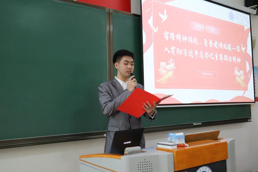 为深入贯彻落实习近平总书记关于弘扬雷锋精神的重要指示,引导青年学生以实际行动践行社会主义核心价值观,3月5日,动物科技学院在西拉木伦校区实验楼411室举办“雷锋精神领航,青春建功北疆”主题活动。学院70余名青年学生共同参与,通过学习深悟雷锋精神的时代价值。