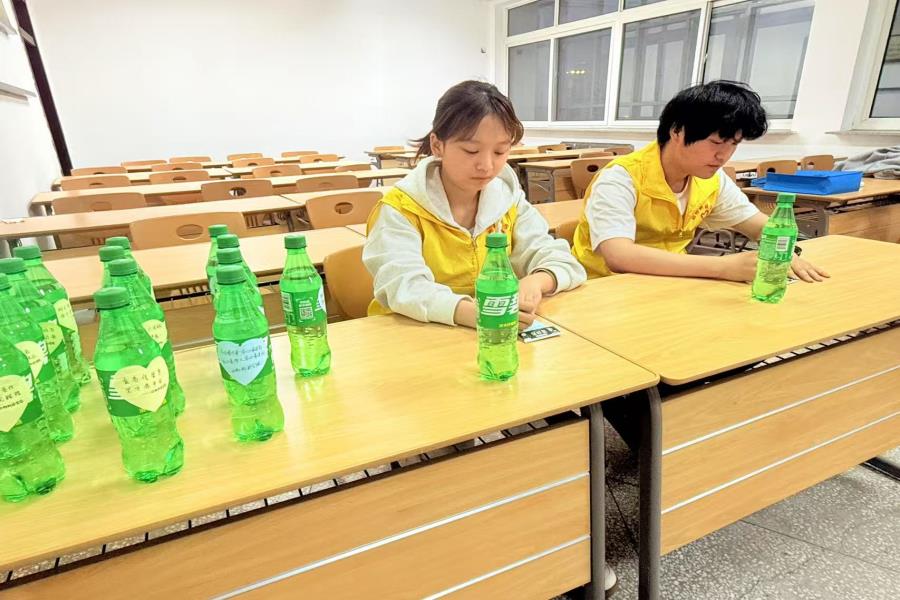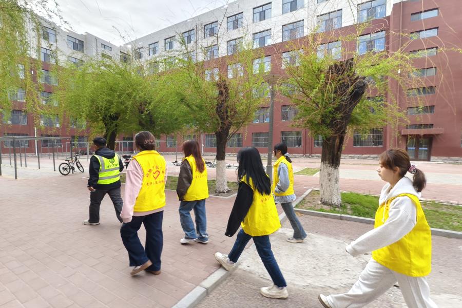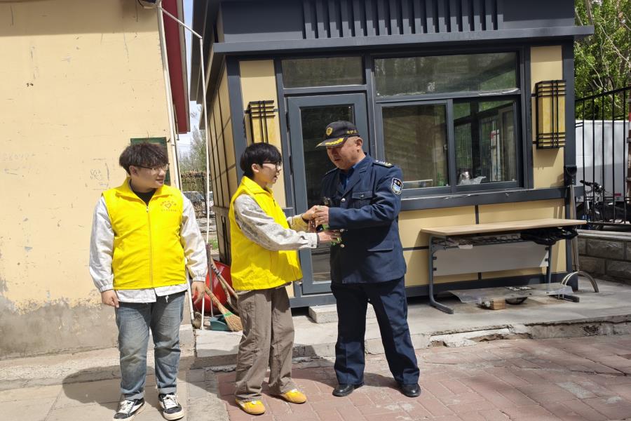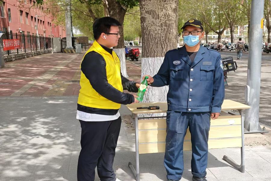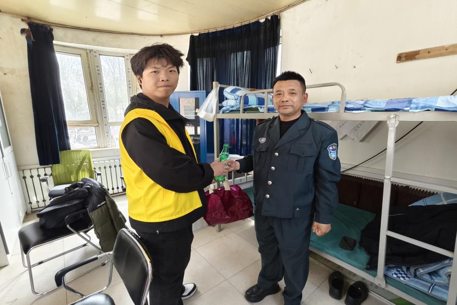 志愿者们身着统一黄马甲,带着精心准备的贺卡和清凉的饮料,分组前往学校安保室和餐厅。他们向正在值守的安保人员送上祝福与饮品,真诚感谢他们日夜坚守岗位,为校园安全保驾护航。不少安保人员收到礼物时露出了惊喜的笑容,连声道谢。志愿者们还跟随安保人员进行日常巡逻,体验他们工作的不易,学习安全知识。