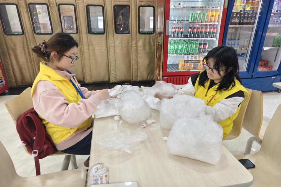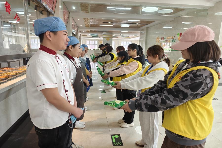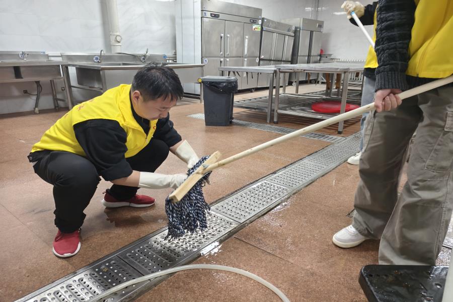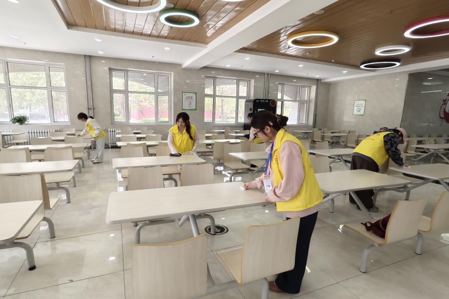 在餐厅,志愿者们协助工作人员完成餐具分拣、桌椅清洁、食材准备等工作,体验他们每天的劳动。