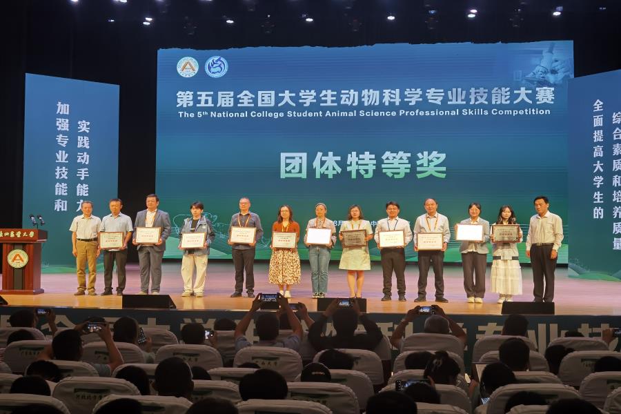 由我校动物科技学院宋扬、李倜宇、张航、秦炜赜和勾长龙五位老师组成的指导教师团队,带领姜昊然、周英驰、王嘉鑫、张世杰和唐铭希共5名学生参加比赛。参赛团队凭借过硬的专业素养和实践能力,斩获团体特等奖和2个单项一等奖的佳绩,充分展现了“民大动科”学子的卓越风采,学院长期重视本科生实践教学、强化学生综合素质培养的育人成果的充分展示。