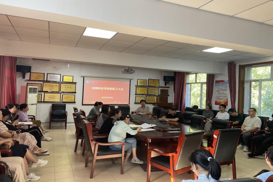8月29日,动物科技学院在树人楼314室召开全体教职工大会,安排布置本学期及近期工作。学院领导班子成员、全体教职工参加会议。会议由学院党委书记包兰英主持。