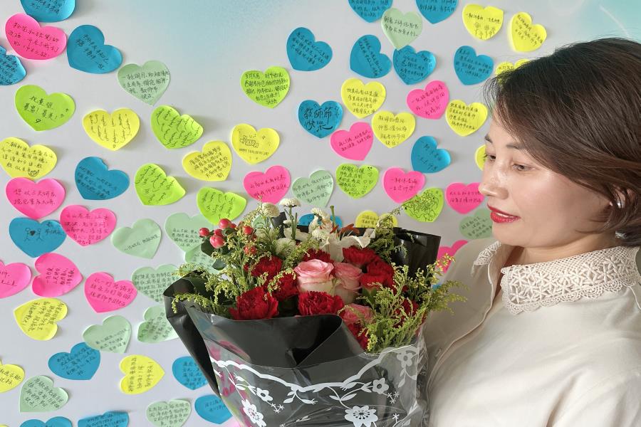 学生们在便利贴上认真书写温馨祝福语,诚挚向辛勤耕耘、无私奉献在教学、科研、管理和服务岗位上的全体教师致敬,一笔一画皆展现了学子们对广大教师的崇高敬意和美好祝愿。老师们来到特别设立的寄语墙前,驻足观看每一条祝福寄语,感受着来自学生的关爱与支持,并合影打卡留念。