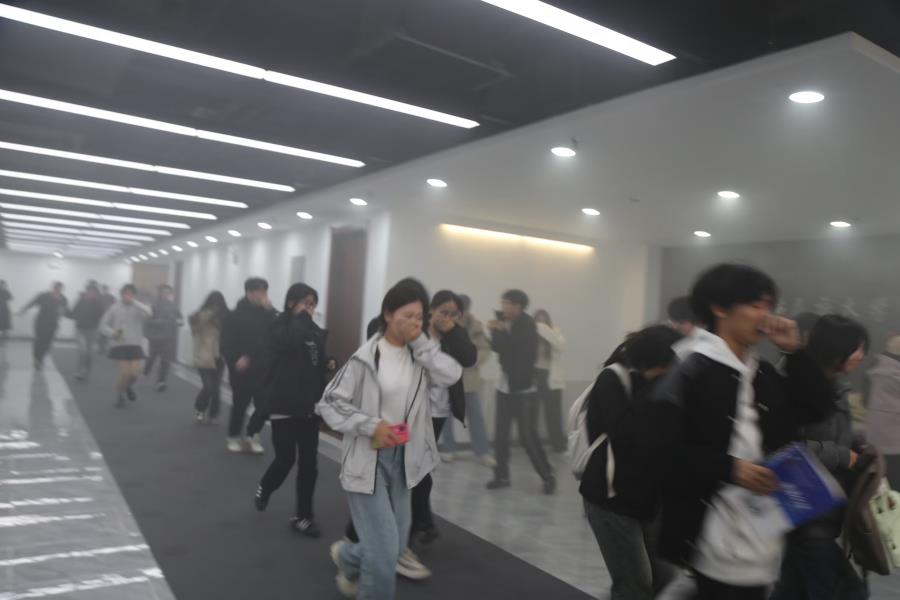 培训会上,安全管理处消防科赵乐乐从“火灾的定义”“火灾的预防”“火灾的应急处置”“常用消防器材介绍”“消防器材使用”等方面为师生普及了扑救初起火灾、自救逃生等消防安全常识,现场示范灭火器、灭火毯、消防栓等的正确使用方法,并组织学生演练模拟某公共场所发生火灾,学院迅速启动应急处置预案,学生按照疏散预案,捂着口鼻、弯着腰,迅速、安全、有序地撤离到指定区域集合。