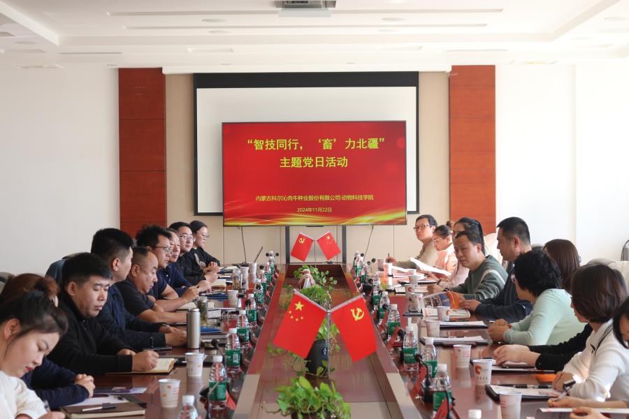 为深入学习贯彻落实党的二十届三中全会精神,全力打造党建品牌,以科技创新赋能乡村振兴,加强校地合作,推动党建和业务深度融合,11月22日动物科技学院联合内蒙古科尔沁肉牛种业股份有限公司开展“智技同行,‘畜’力北疆”主题党日活动。本次活动由教职工第一党支部书记高树新教授组织带领,动物科技学院副院长宋扬、教研室实验室主任、研究生党支部书记、团总支书记及其他师生共赴“内蒙古科尔沁肉牛种业股份有限公司”(科尔沁肉牛种业)参观并举行座谈会。