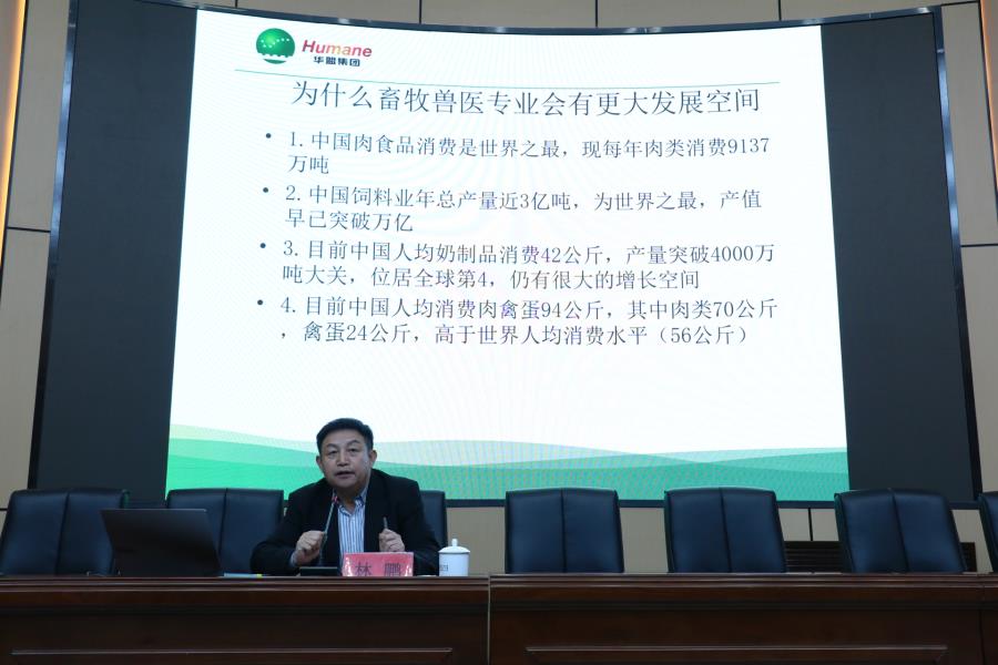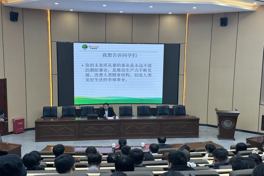 为加强学生职业生涯教育和指导,助力学生成长成才,动物科技学院于4月26日晚在霍林河校区明理楼报告厅召开大学生职业生涯规划主题讲座。本次讲座由我校校友、华盟集团董事长林鹏主讲。学院党委书记包兰英、团总支书记董文净、辅导员藏小文和2022级与2023级一百余名学生参加活动。党委副书记昭日格图主持讲座。